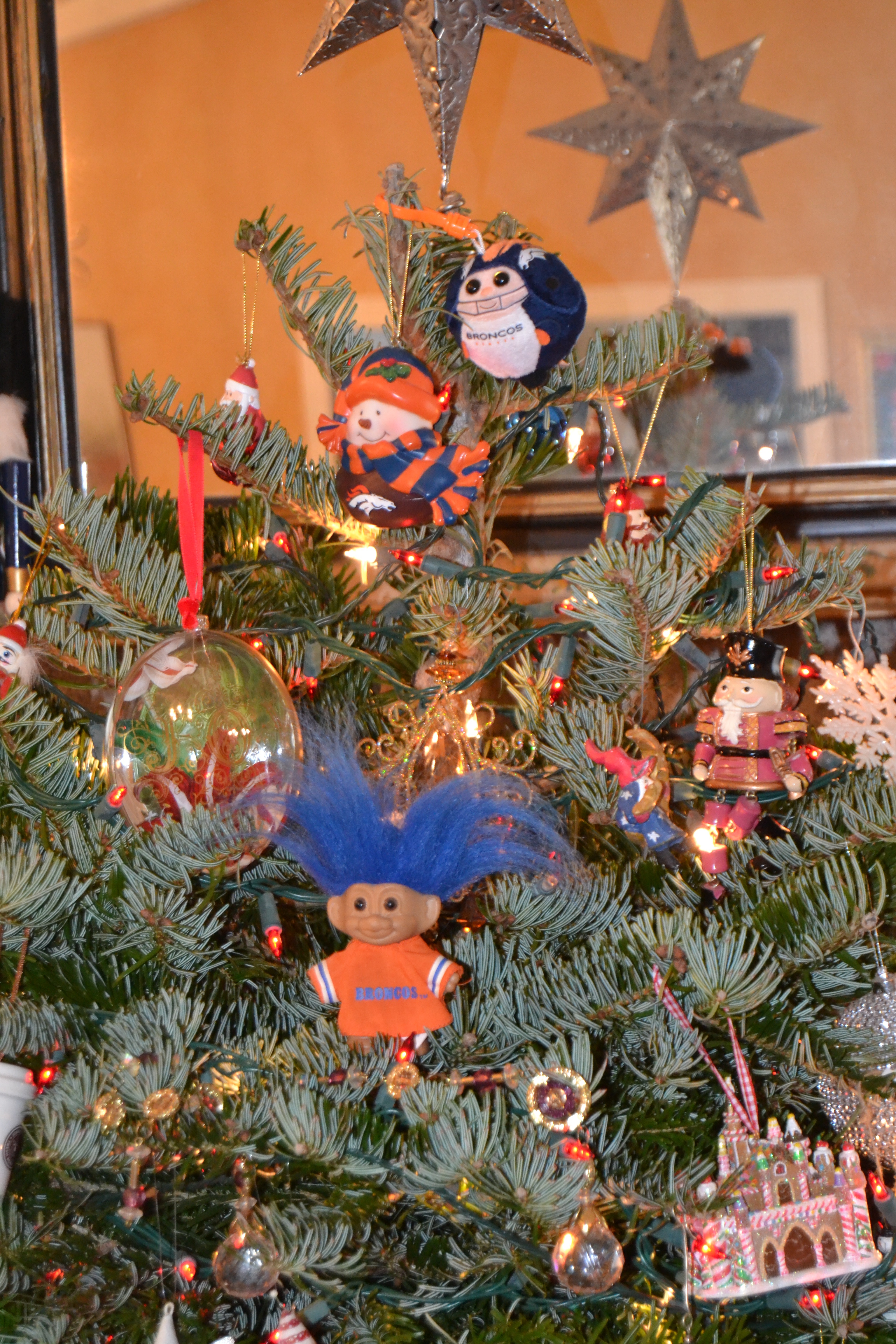 When you put me in charge of decorating the Christmas tree this is what happens: The Broncos ornaments get prime placement and a lucky troll joins the party.